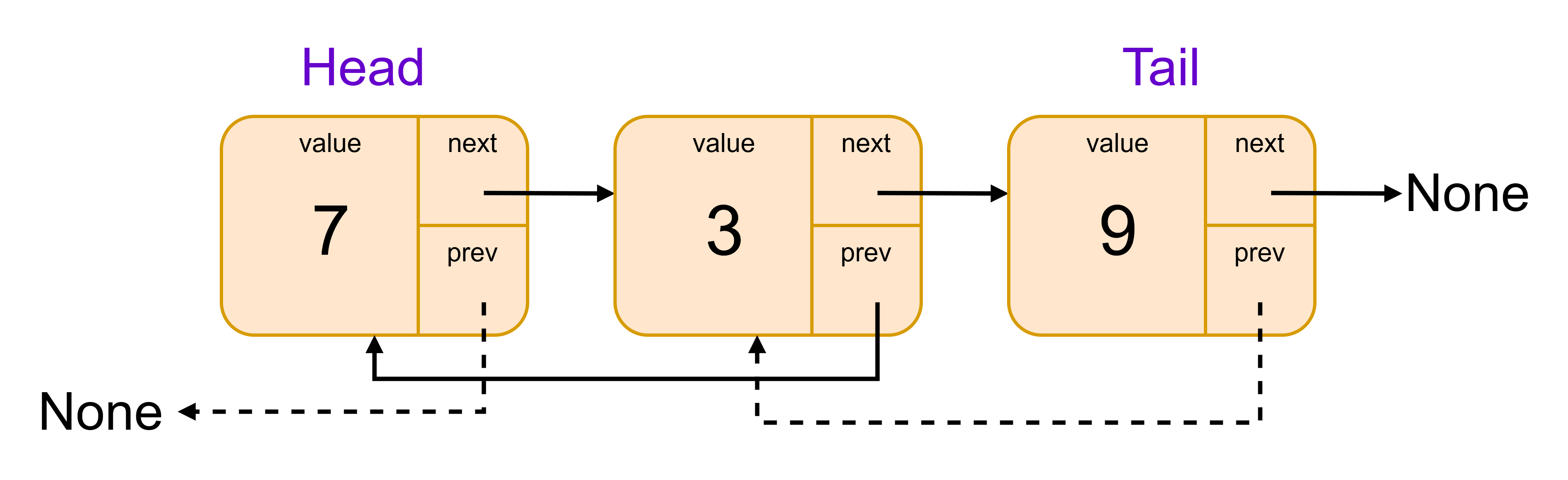 head, a reference to the first element in the listtail, a reference to the last element in the list