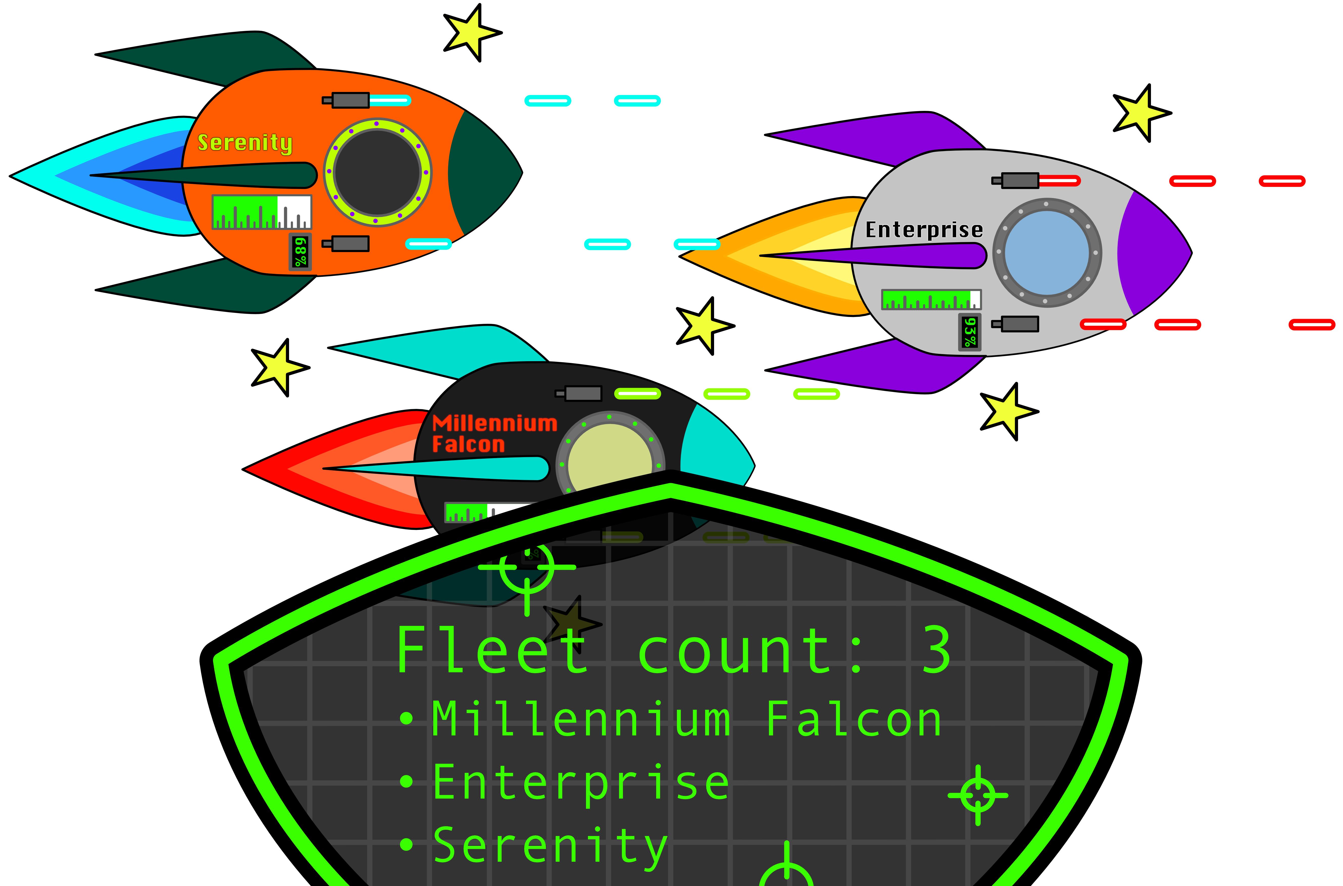 registerper the requirements.Test your code by registering ships and then printing fleet count e.g.