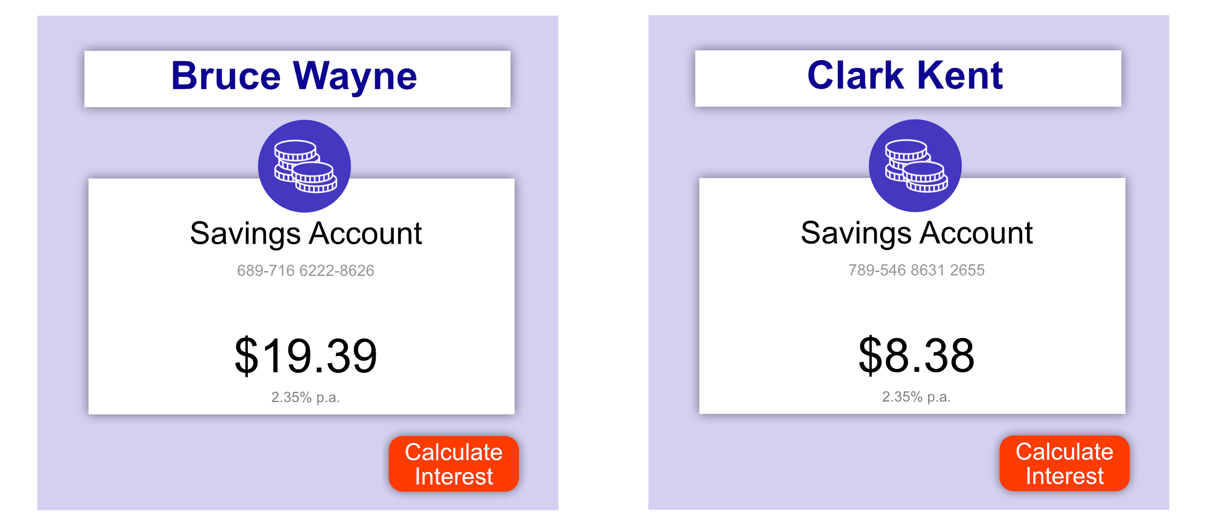 In this example, the interest rate of both Batman’s and Superman’s accounts are the same, 2.35%.
