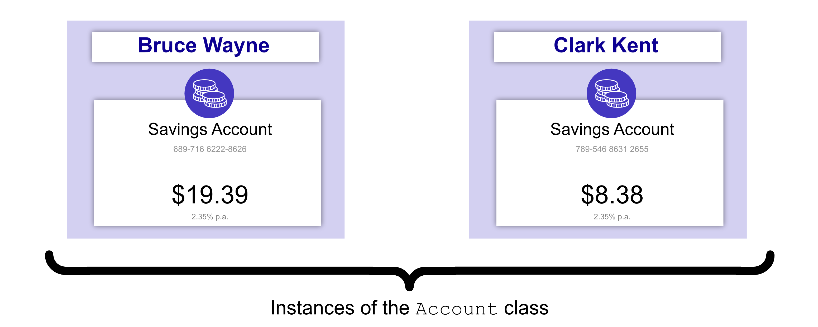 batman_account = Account("689716", "62228626", 19.39, "Bruce Wayne")