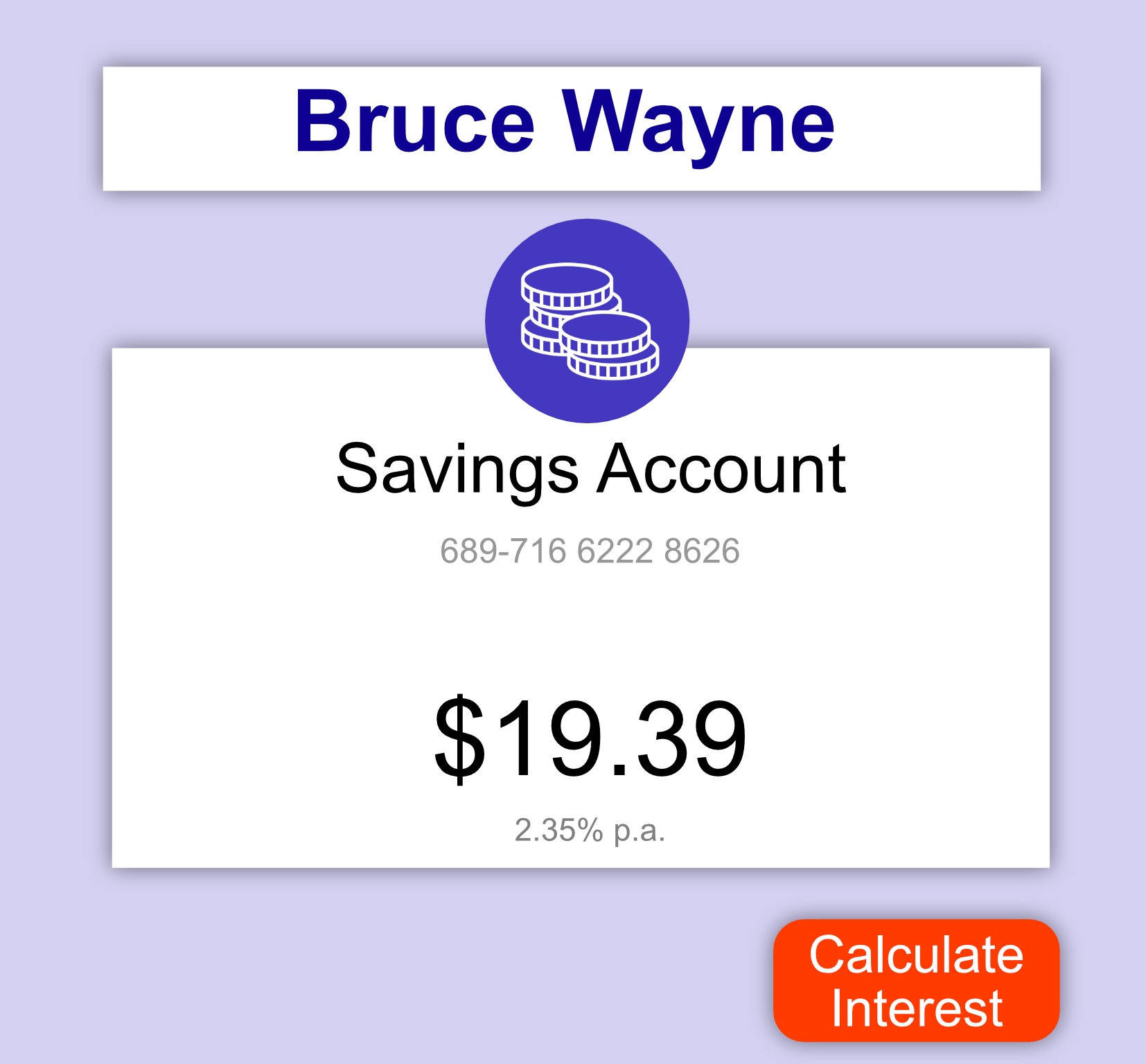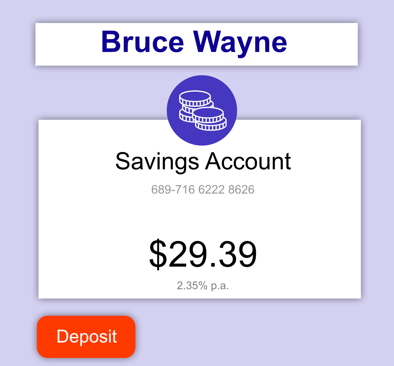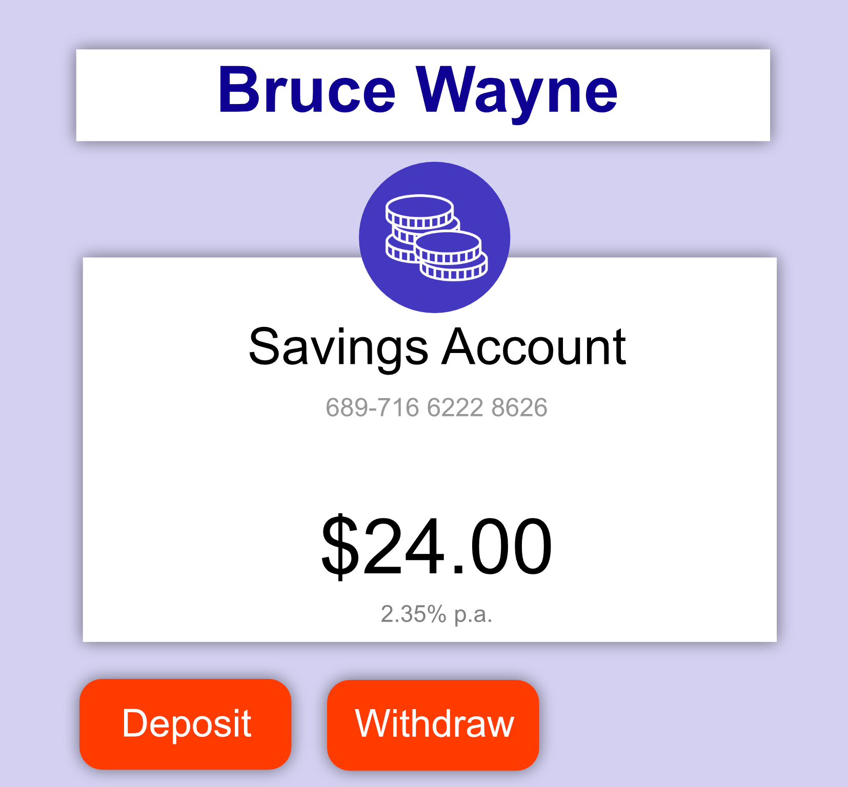 batman_account = Account("689716", "62228626", 19.39, "Bruce Wayne")