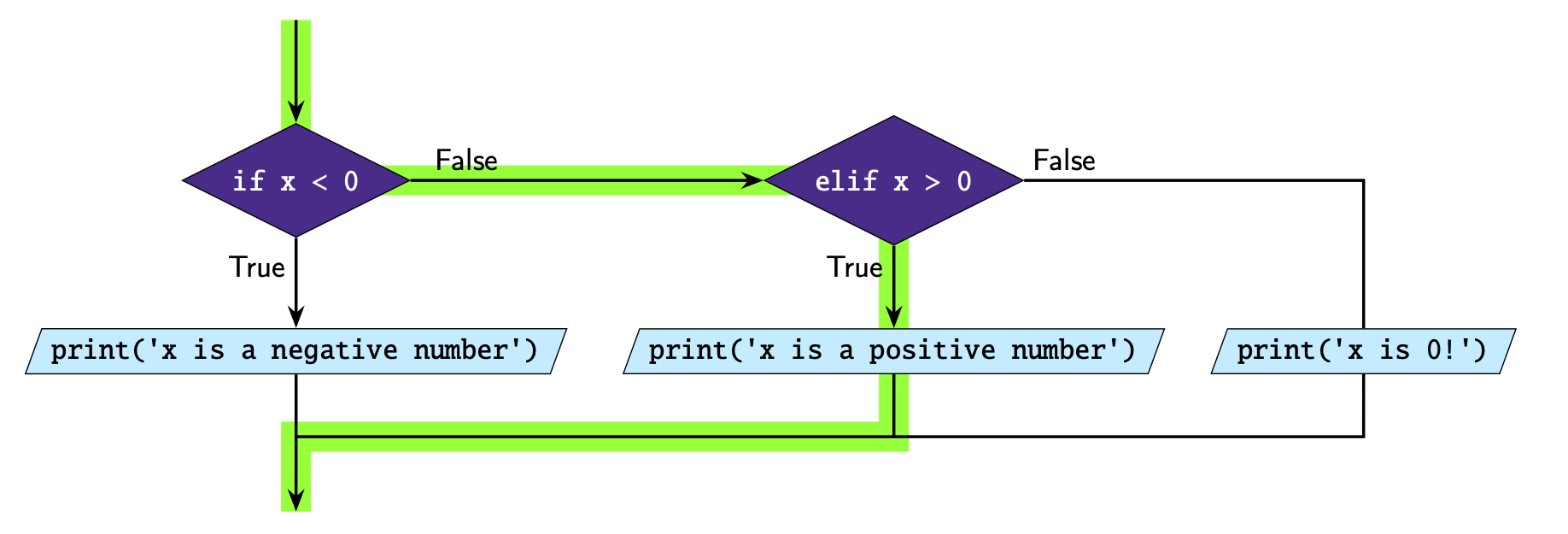 Consider the two programs below. They are similar but not quite the same. If you set the variable light to 'yellow', both programs will print Slow down!.