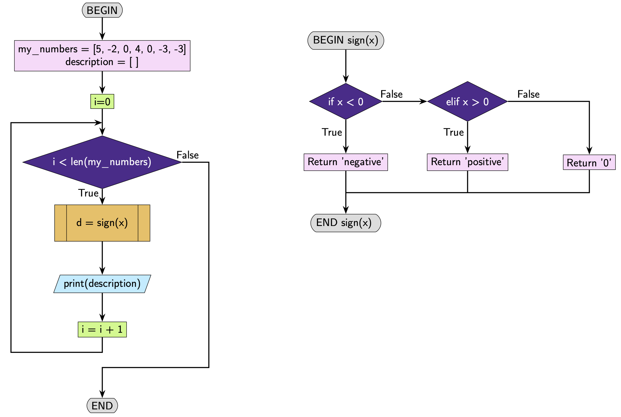 def sign(x): if x < 0: return 'negative' elif x > 0: return 'positive' else: return '0' my_numbers = [5, -2, 0, 4, 0, -3, -3] description = [] for i in range(len(my_numbers)): description.append(sign(my_numbers[i])) print(description)