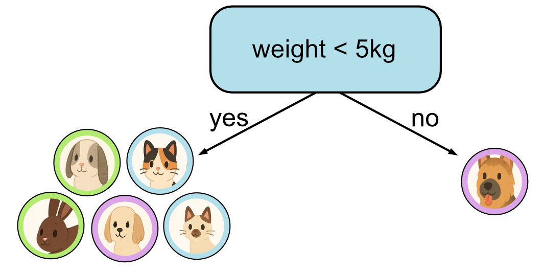 Our goal is to build a classification tree that can be used to separate out the 3 classes: rabbit, cat, dog.