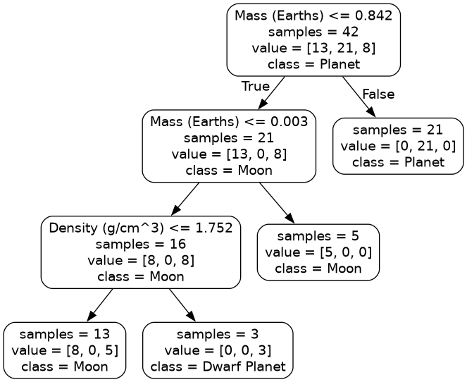 We will use this data to build a classification tree that can classify astronomical objects as a moon, planet or dwarf planet.