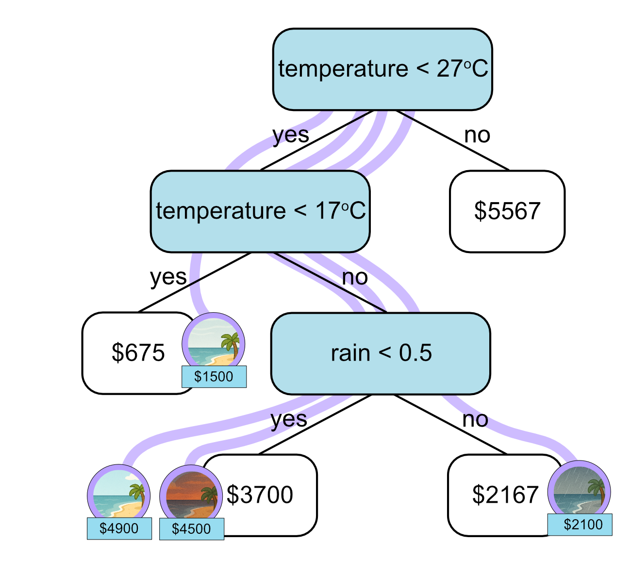 Let’s use our regression tree to predict the ice cream sales for each test sample.