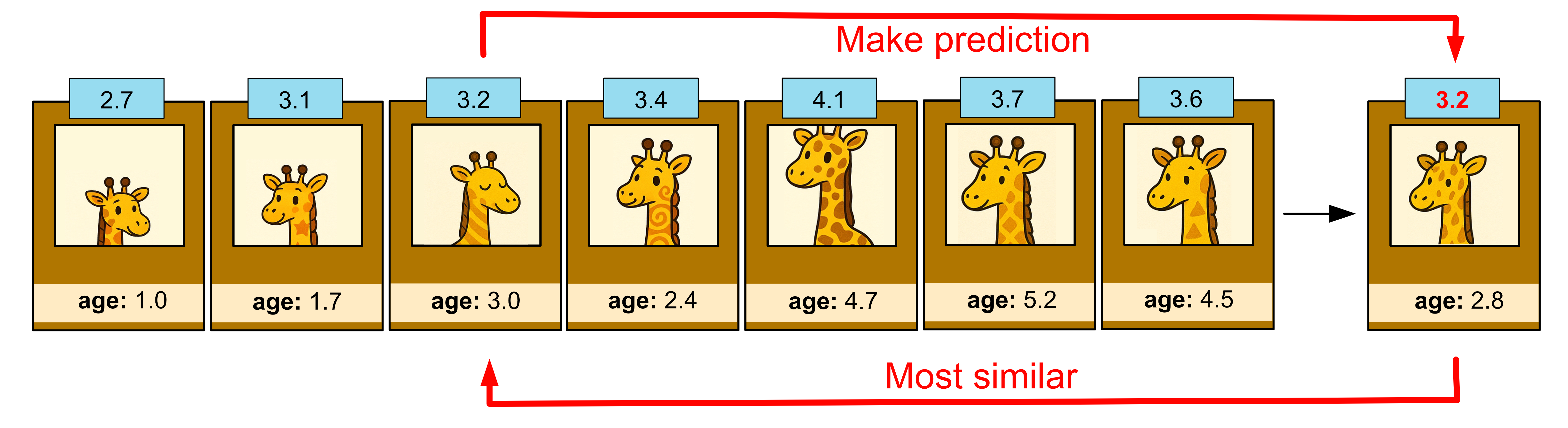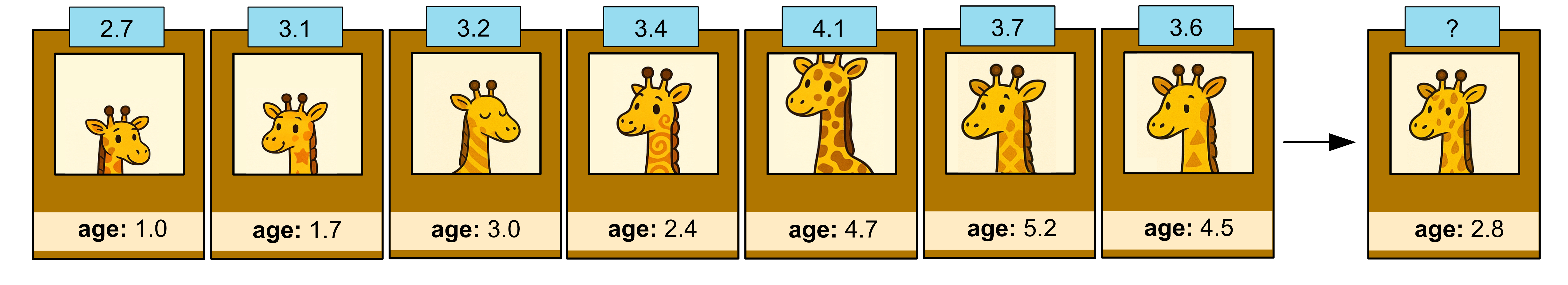 This giraffe happens to have a height of 3.2m. Thus, we predict that our giraffe is 3.2m tall.